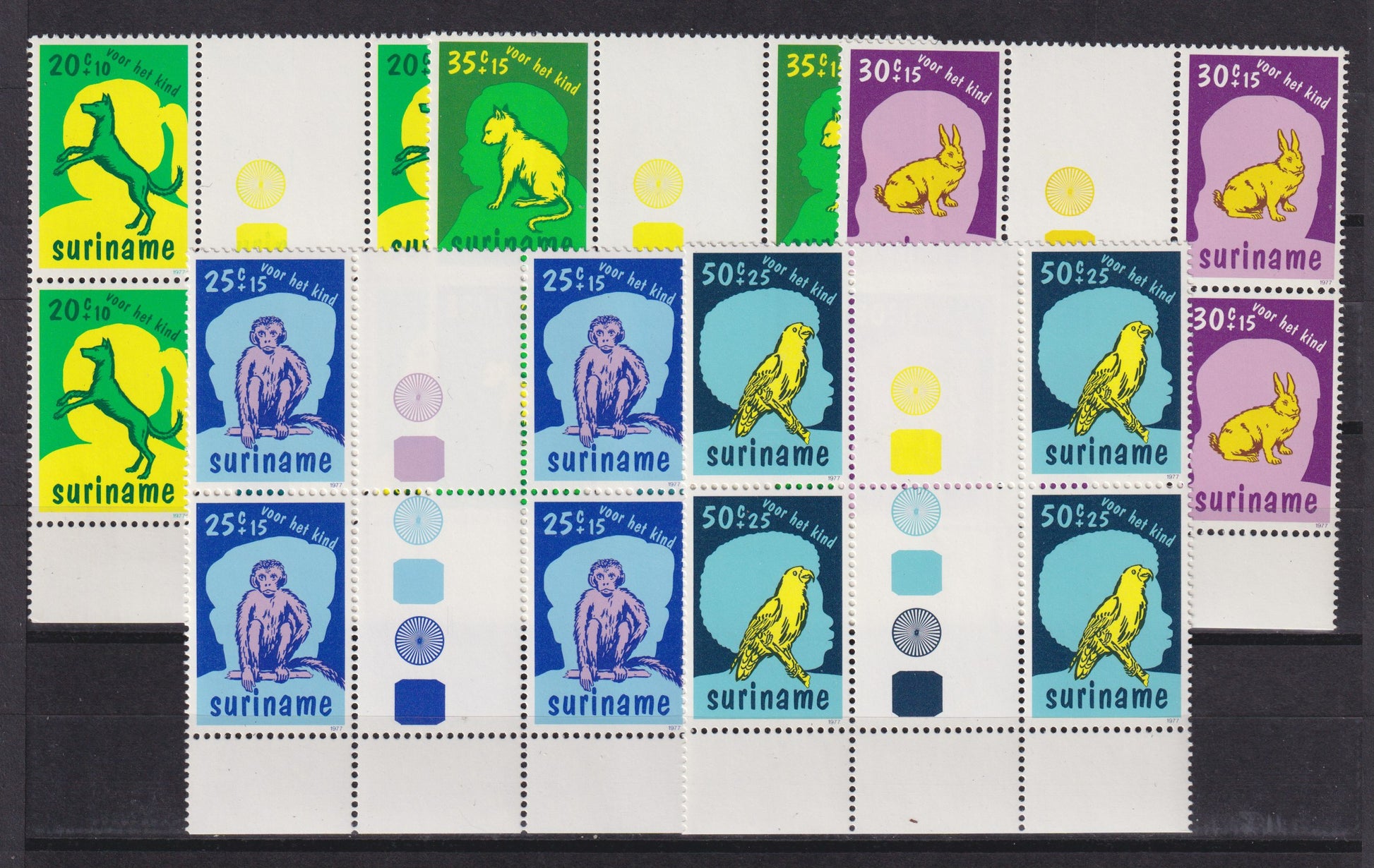SURINAME, gutterpairs in blok van vier, postfris, AANBIEDING